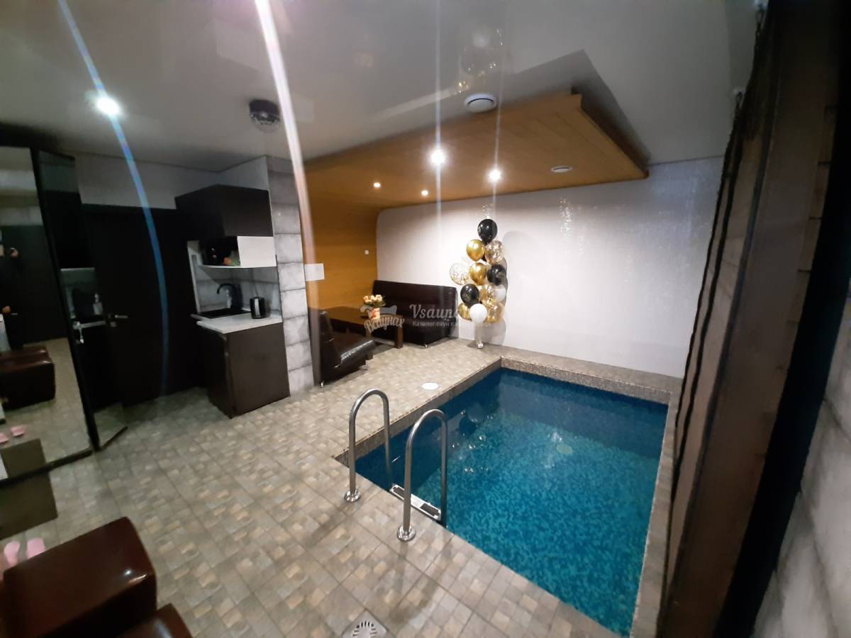 Домик не большой. Одна основная комната с бассейном , где
