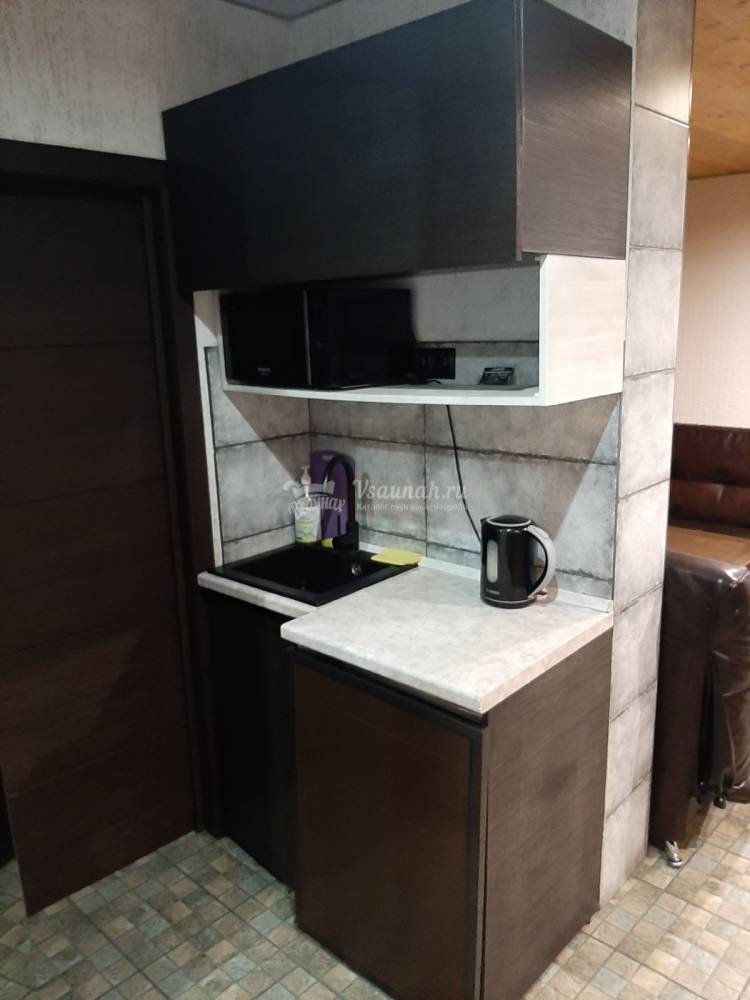 Не большая кухня : электрический чайник, микроволновая печь, не большой